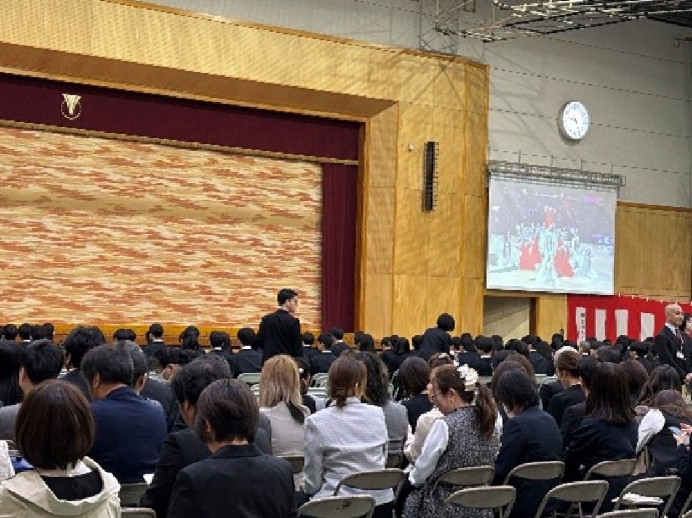 4月9日(木)の入学式や4月10日(金)の始業式で、早速活用させていただきました。このスクリーンは、今後も学校行事や集会、授業など、さまざまな場面で活用してまいります。