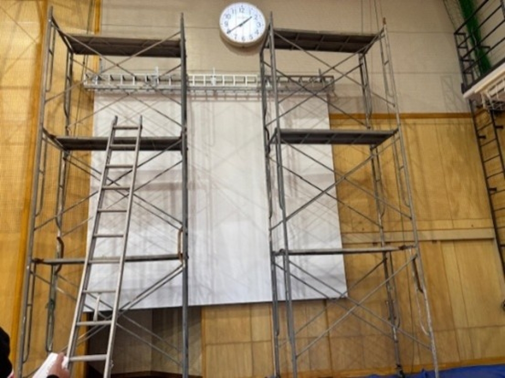 令和7年度の卒業生の皆さんより、卒業記念品として体育館用電動スクリーンを御寄贈いただき、3月16日(月)に設置工事が完了しました。